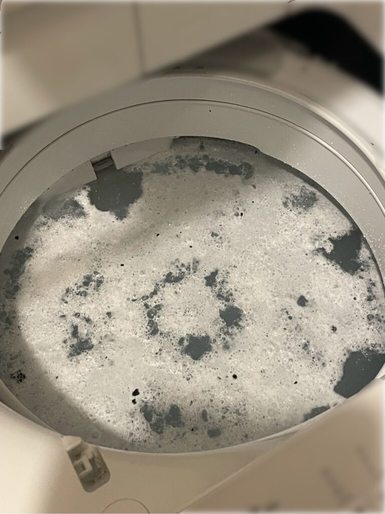 👆洗濯槽に入れて所定時間を置くとこんな感じに(洗浄中)