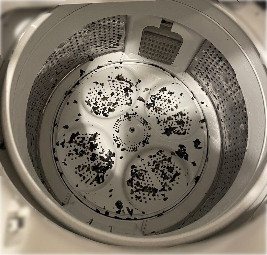 ➡月1回の洗濯槽掃除を行っている我が家ですが、それでも時折洗濯物に黒カビが付着することがあり、私にとっては「またか…」と軽くストレスでした💦
