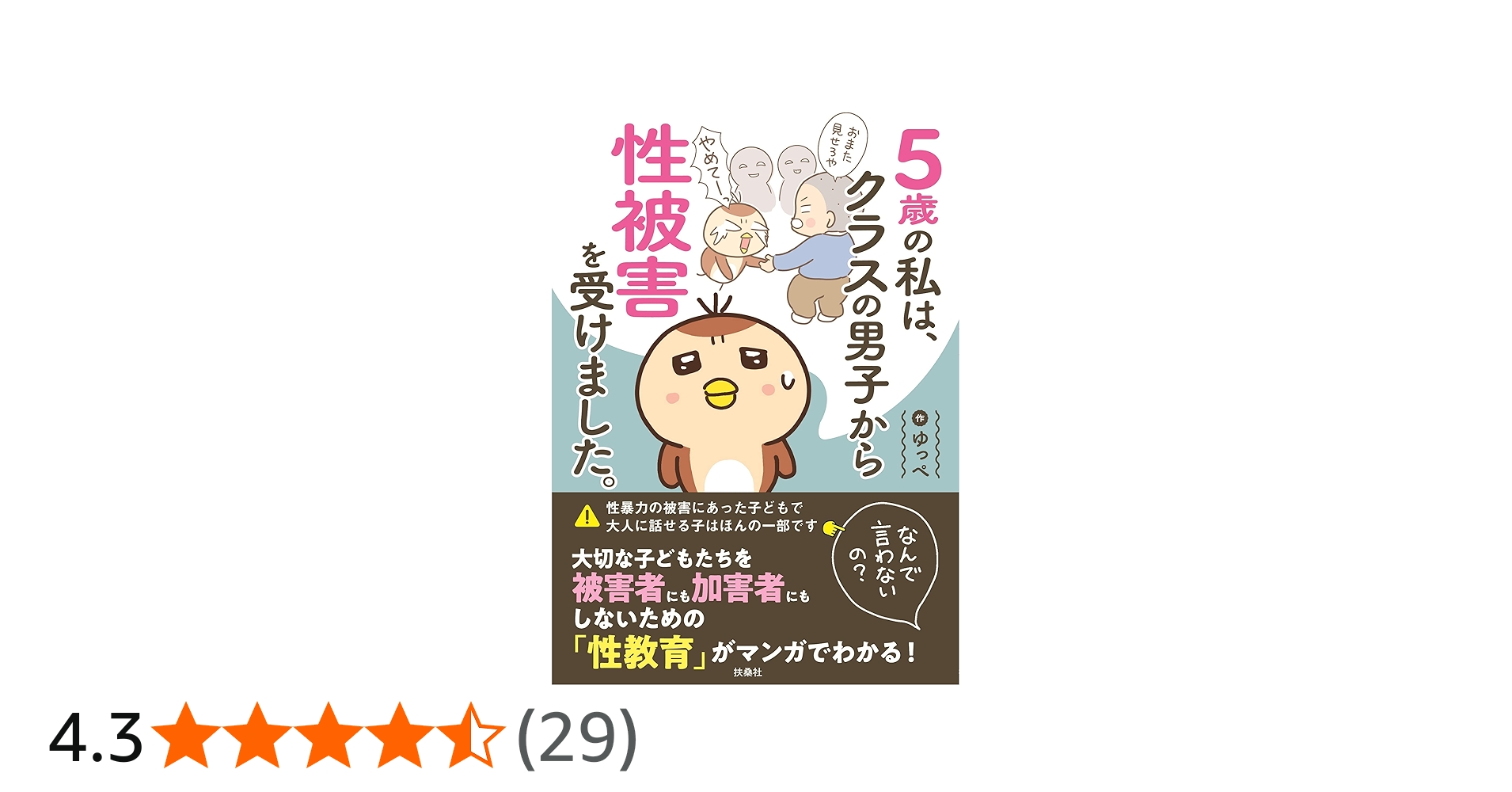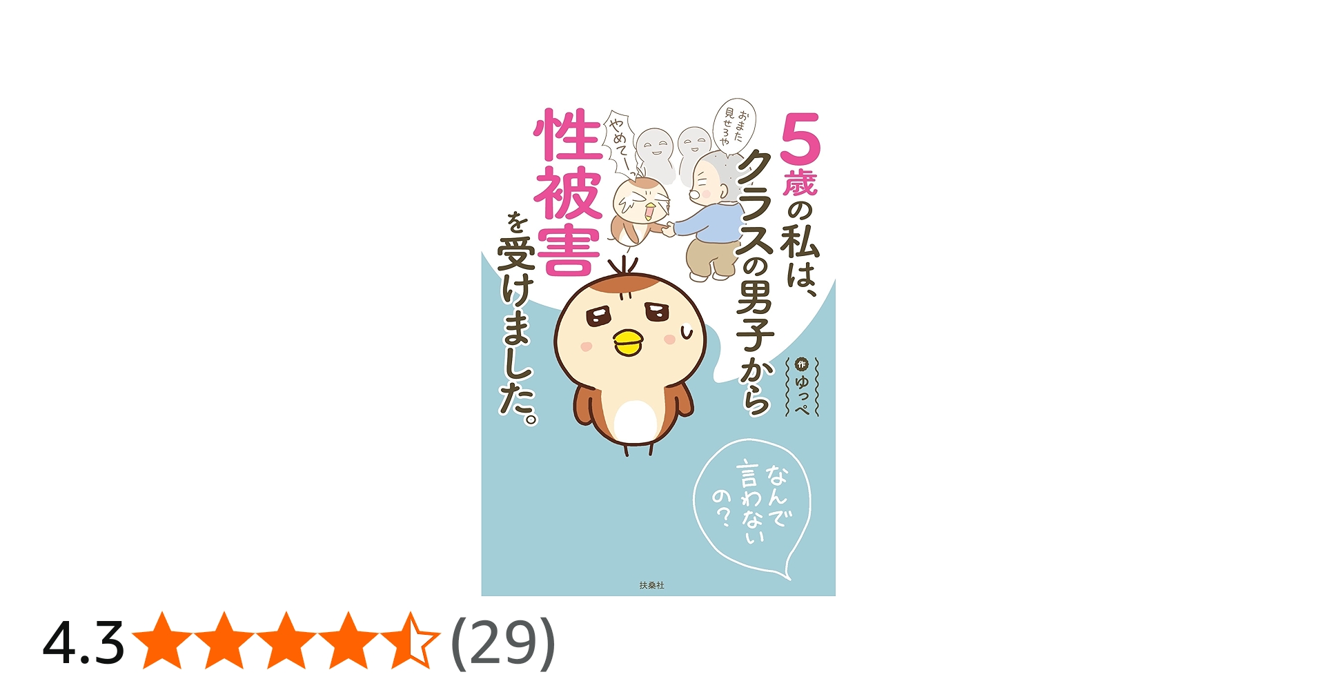 「お昼寝中、隣の男子が私のパンツに手を入れてきて…楽しいはずの幼稚園が恐怖の時間になりました」著者ゆっぺが、5歳のときに同級生から受けた“性被害”をマンガ化した本作。『なんで言わないの?』としてブログに掲載されると大きな話題を呼び、ついに書...