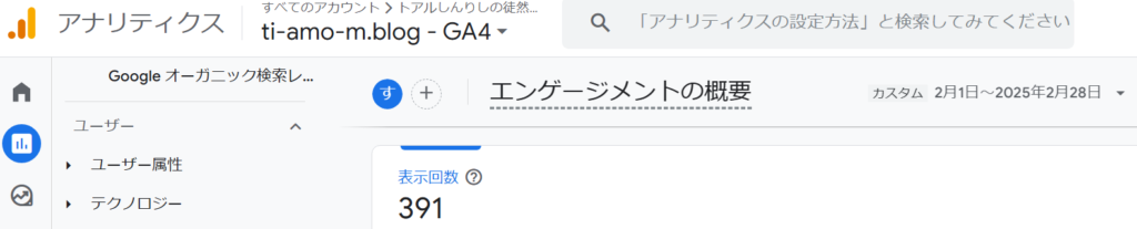 2025年1月の月間PV数に比べ、2025年2月は「PV数が100ほど減少し、PV数が300台ほどになった」という結果に。