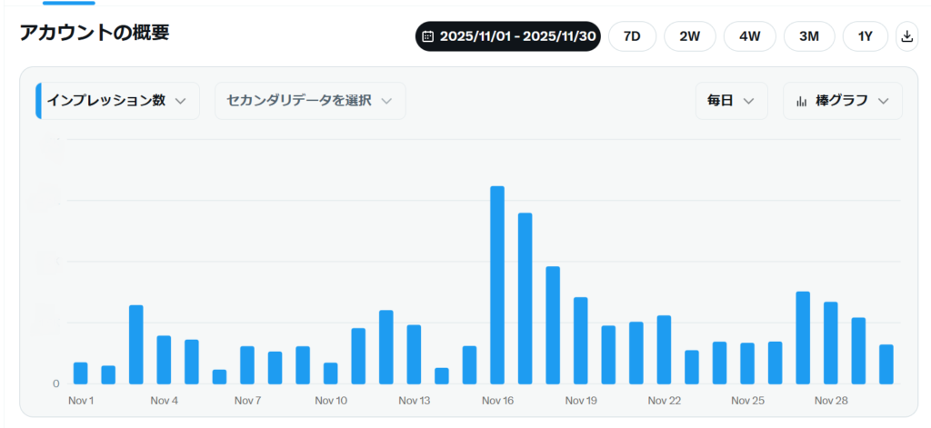 X(旧Twitter)でのインプレッション数の伸びを見てみると…