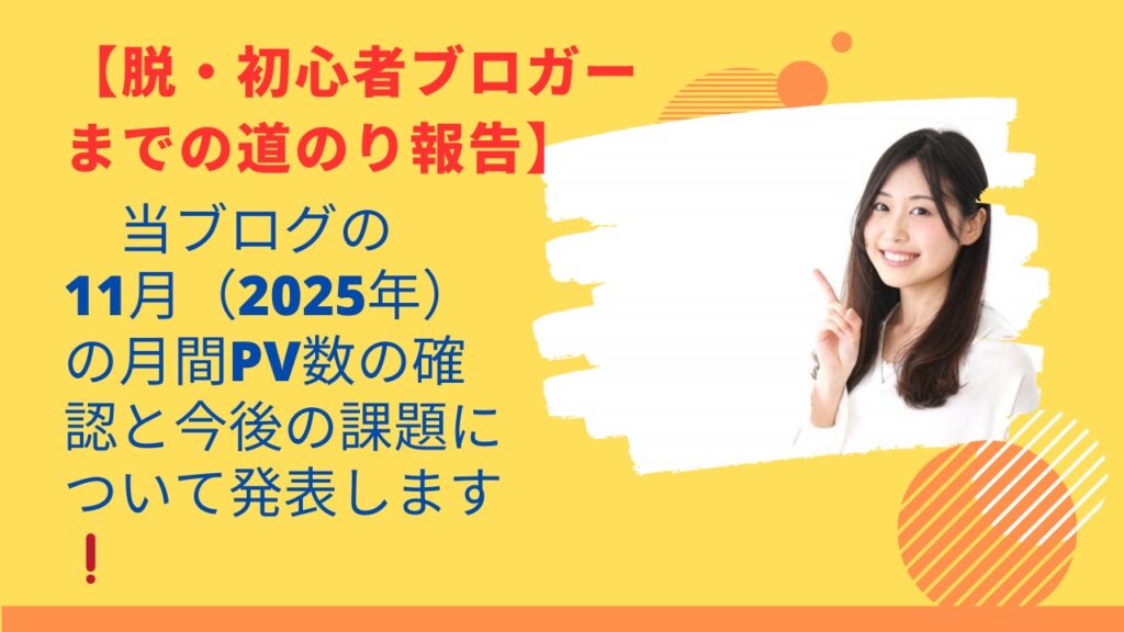 【脱・初心者ブロガーまでの道のり報告】2025年11月のPV数とブログ運営の『今後の課題』も発表したいと思います😄