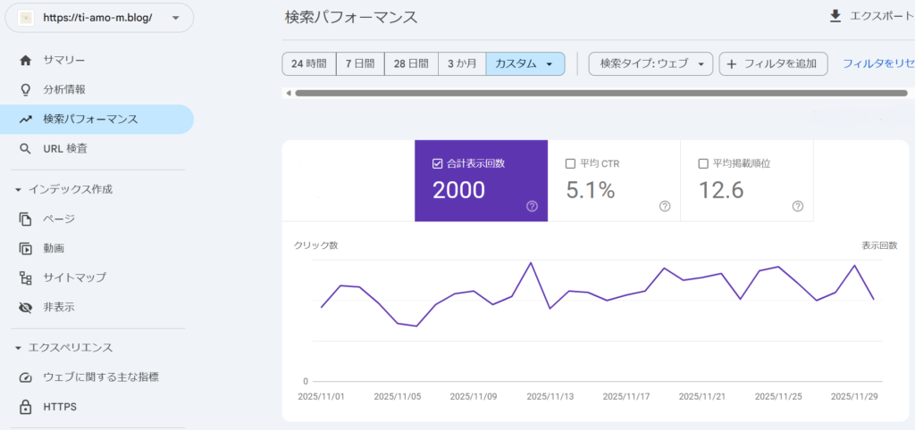 ✅Search Consoleの2025年10月~2025年11月の合計表示回数がわかる🔍